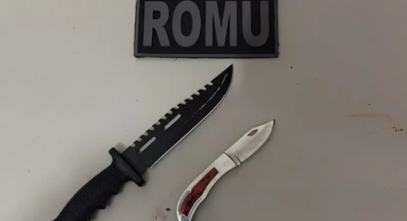 Depois de a agressão, o suspeito saiu do local e se refugiou em um bar próximo, onde foi localizado através da equipe da Romu. A faca usada no ataque não estava com ele no momento da abordagem, mas foi indicada como estando dentro do estabelecimento.